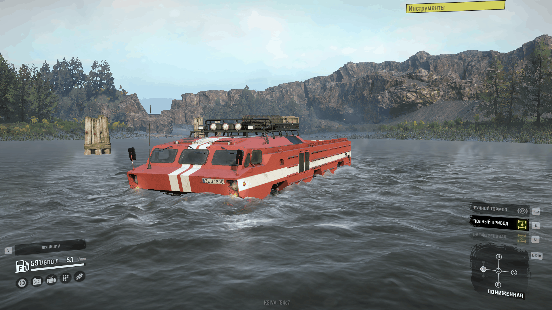 Cars [F] can walk on rivers and other bodies of water, to launch all-wheel drive it is enough to turn on all-wheel drive, to save fuel on a hard surface and swamp it is recommended to turn off all-wheel drive.